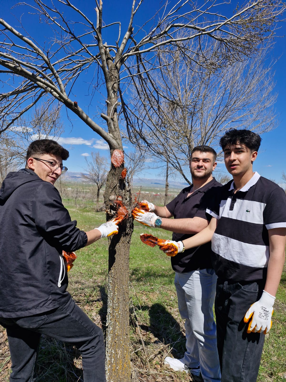 Öğrenciler, hocalarının gözetiminde gerçekleştirilen etkinlikte, ağaçlarda doğru budama tekniklerini uygulamalı olarak öğrenme fırsatı buldu. Budama işleminin ardından ağaçlarda oluşan yara bölgeleri, zararlıların girişini engellemek ve hastalık riskini azaltmak amacıyla özel ağaç macunu ile kapatıldı.